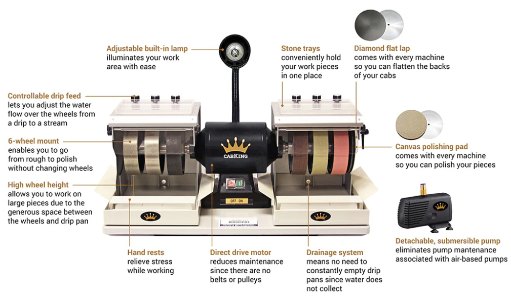 CabKing slijp- en polijstmachines brengen uw sieradenontwerpen en slijpkunst tot leven.